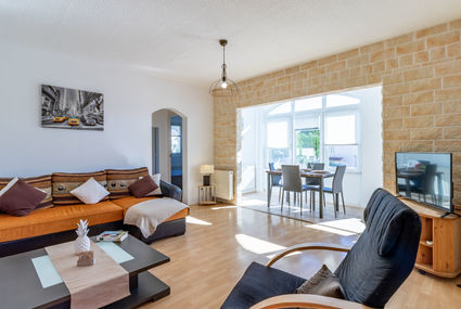 Lys, komfortabelt og pæn indrettet: stue/spisestue med spisebord, sat-TV, fladskærms TV, klimaanlæg og varmluft opvarming. 1 stort værelse med 1 fransk seng (2 x 90 cm, længde 190 cm), brus/WC. 1 værelse med 2 senge (90 cm). Kogeniche (opvaskemaskine, 3 keramiske kogeplader, mikroovn, fryser, elektrisk kaffemaskine). Bad/WC. Overetage: (udvendig trappe) stue/spisestue med panoramavindue med spisebord, sat-TV, klimaanlæg og varmluft opvarming. 1 værelse med 1 fransk seng (135 cm). 1 værelse med 1 x 2 køjesenge. Lille køkken (opvaskemaskine, 3 keramiske kogeplader, mikroovn, fryser, elektrisk kaffemaskine). Brus/WC. Udsigt over svimmingpoolen og byen. Til benyttelse: vaskemaskine. Internet (trådløs LAN [WLAN], gratis). Parkeringsplads (2 Biler). Bemærk venligst: TV kun FR, DE, EN. HUTG005843