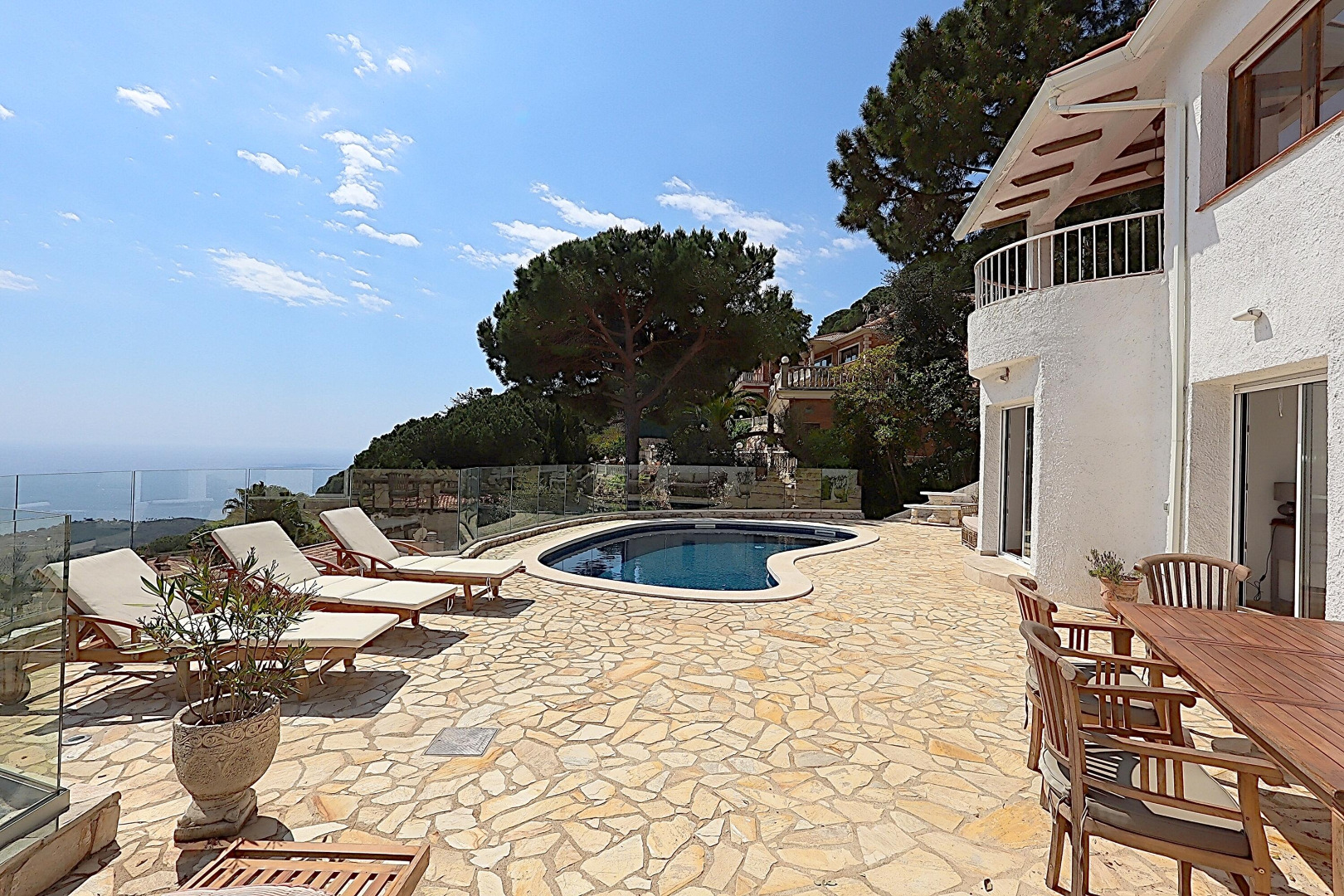 - Du når frem til swimmingpoolen via korte trapper oppe fra.