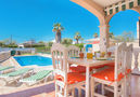 Feature: Please note: Non-smoking house. Situation: residential area La Fé. Access/parking: parking on the road near the house. Estate (private use): approx. 200 m², closed plot (hedge, wall), lawn, flagged floor. Outdoor facilities(private use): terrace 30 m² (partially roofed), balcony 7 m², furnishing provided, lounge furniture (permanently mounted), transportable barbecue. Pool (private use): 9.0 x 4.5 m, open throughout the entire season. Pool area: 8 sun loungers, sunshade, external shower. Please note: access to the pool via stairs (2 steps). Important information: Please note that the visitor's tax has to be paid to the agency before your arrival (either by bank transfer or by credit card). The agency will contact you by email or by phone before your arrival to resolve how you would like to make the payment. ● Distances: Center Porto Colom in approx. 2 km. Manacor in approx. 26 km. Next shopping possibility (Porto Colom) in approx. 1.5 km. Airport Palma in approx. 58 km. Harbour/marina in approx. 1.7 km (Porto Colom). Sea in approx. 1.7 km. Beach in approx. 2.5 km (Cala Marcal). Golf course Vall d'Or in approx. 3.5 km.